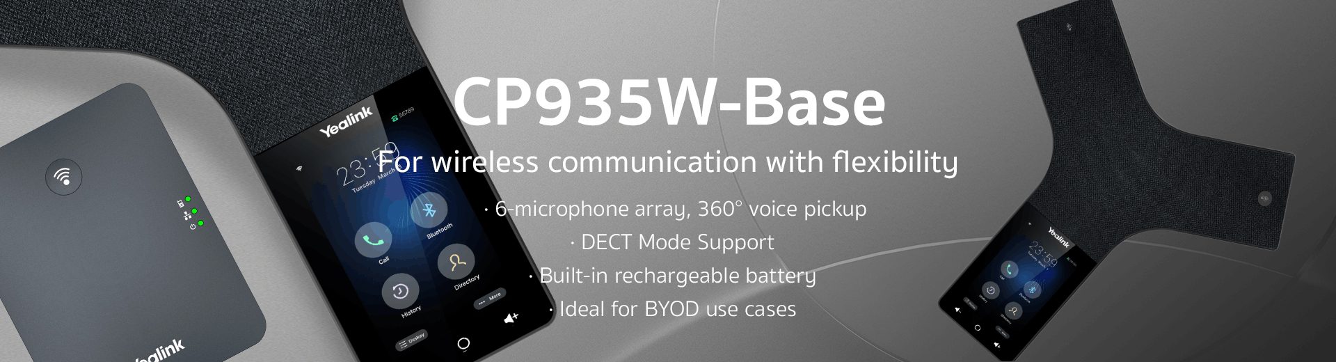 Enabled for DECT connectivity, Yealink CP935W-Base can register SIP account via DECT base directly, which is defined to enhance wireless communication with improved calling and conferencing experience, reliable battery performance and broad spacial applicability.