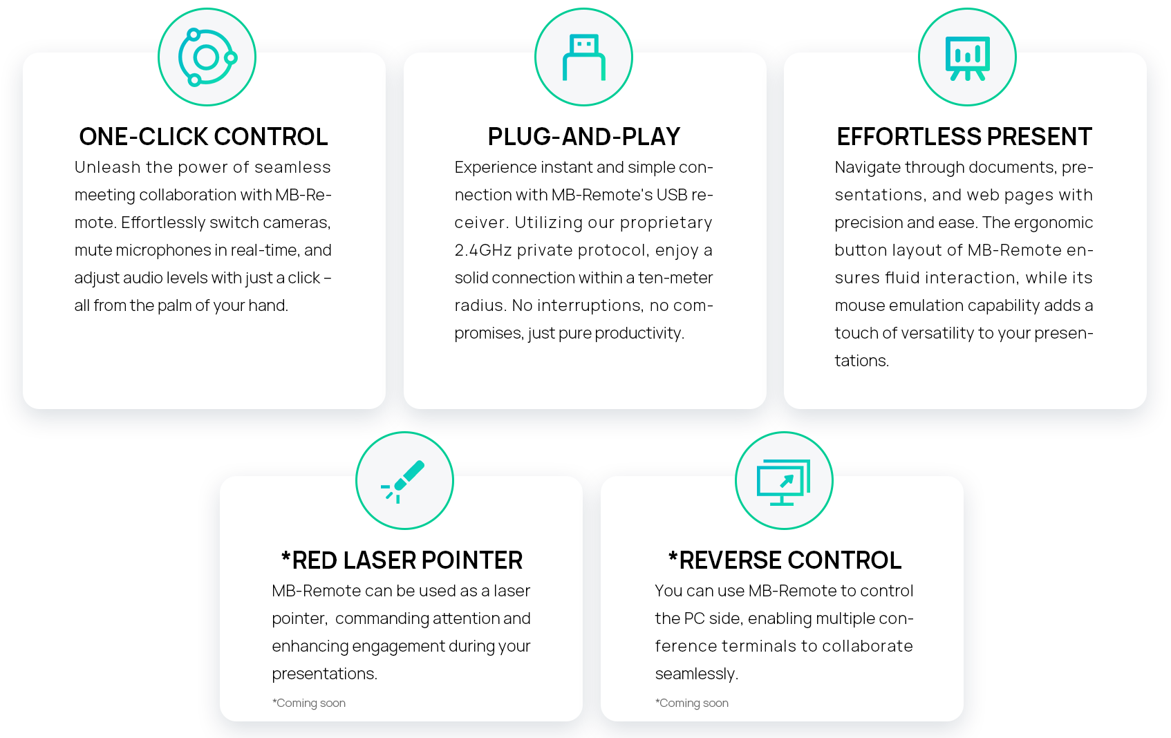 It's not just a remote, it's your gateway to seamless presenting. Specially designed for Yealink conference terminals, MB-Remote empowers you to navigate your presentations effortlessly, ensuring a smooth flow and precise interactions with your audience during meetings.