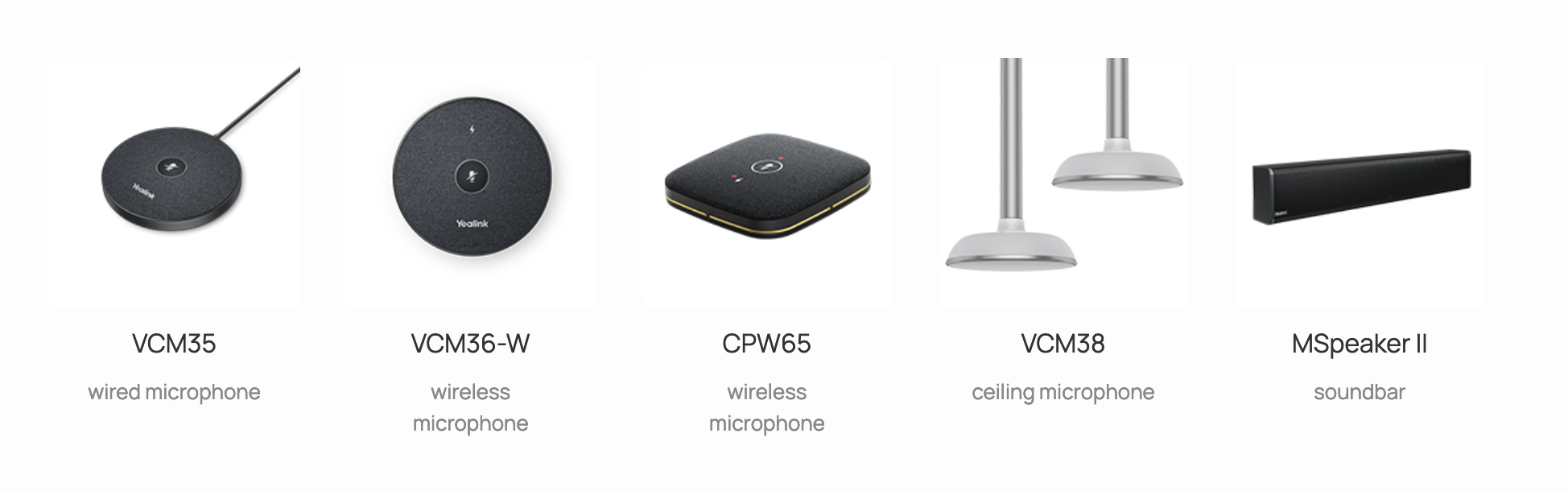 In addition to the advanced video conference camera, the Yealink MCoreKit-C5-ZR system offers flexible audio options.Choose from a range of voice pickup devices, including the Yealink VCM35 wired microphone, the VCM36-W and CPW65 wireless microphones, and the VCM38 ceiling microphone, combined with the MSpeaker II soundbar, to meet your specific audio needs.