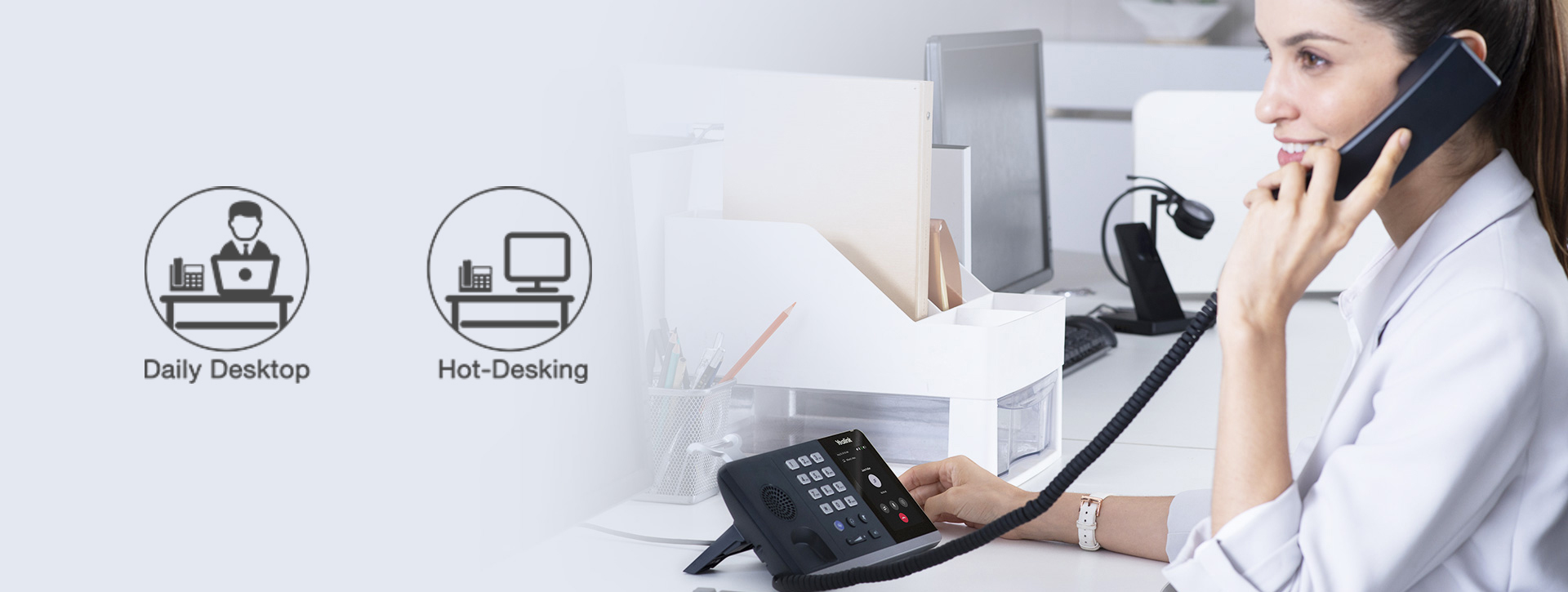 office and hot-desking by offering softphone users familiar telephonic experience with user-friendly