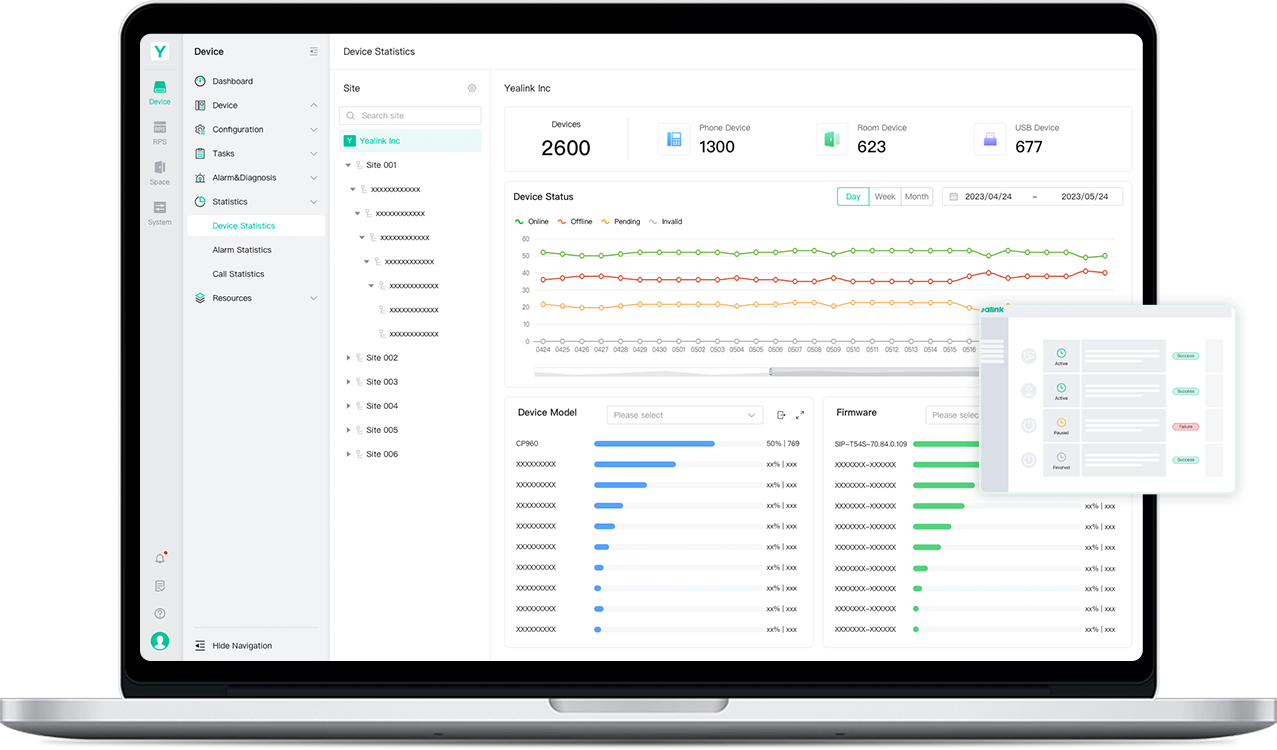 Support your workforce, upgrade and update phones in bulk, and get real-time alarms such as poor call quality or firmware upgrade failure with professional management platforms such as Teams Admin Center (TAC) and Yealink Management Cloud Service (YMCS).