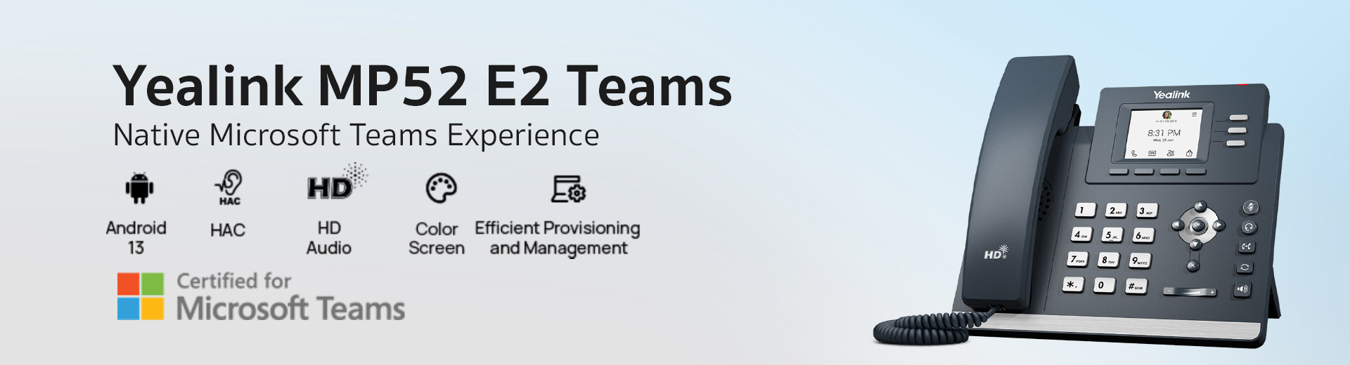 Empowered by Yealink Optimal HD audio, Acoustic Shield, and Smart Noise Filtering, immerse in high-quality communication free from overwhelming noise. Experience enhanced audio effects with loudness enhancement in hands-free speakerphone with AEC and full-duplex technology, come across every idea effortlessly. Supporting HAC Handset, MP52 E2 makes the audible world equal to everyone. To hear, to communicate, to create.