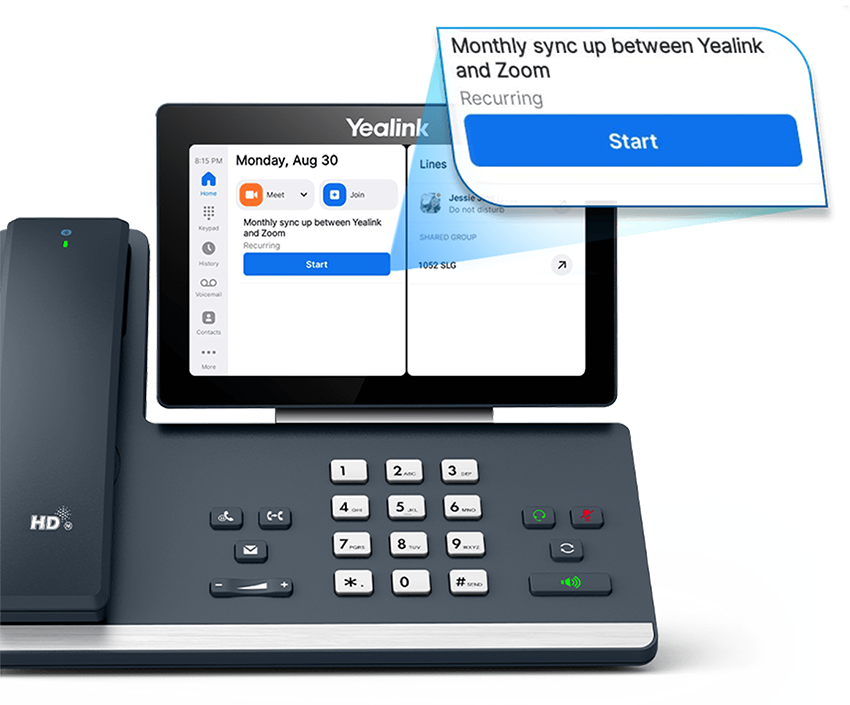 Certified as Zoom Phone Appliance, Yealink MP54 provides both native Zoom Phone and Meetings capabilities, enabling users to collaborate effortlessly with premium video (receive only), audio, and whiteboard features.