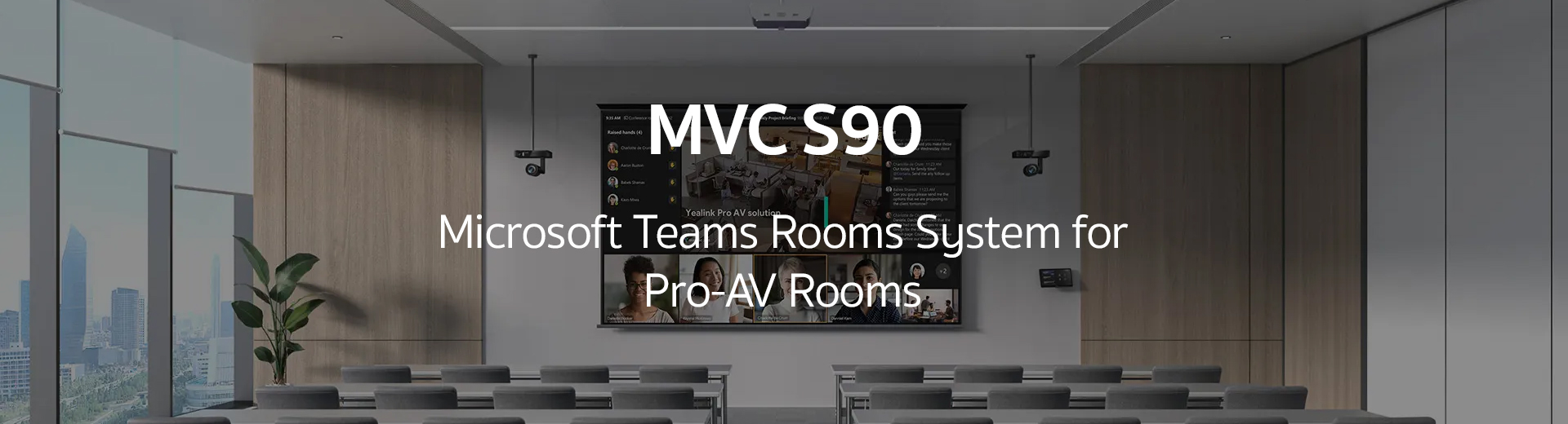 Designed for extra-large rooms, the MVC S90 Microsoft Teams Rooms system features UVC86 intelligent multi-camera system,