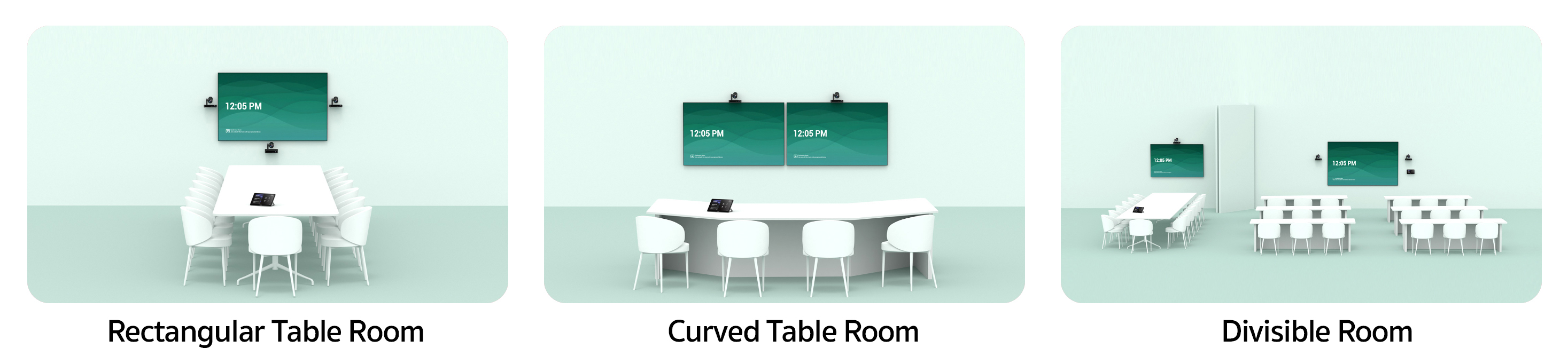 This solution caters to rectangular and curved conference tables for the Microsoft Front Row solution.