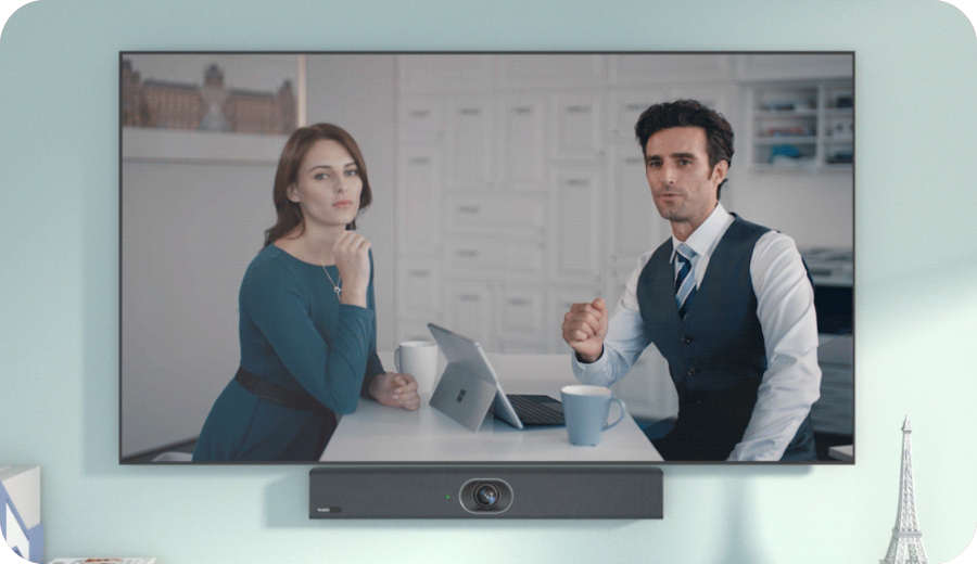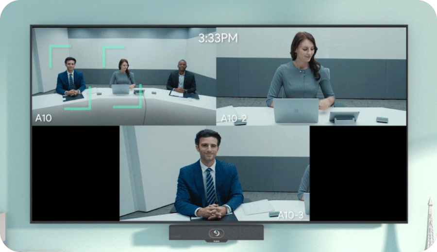 Speaker Tracking focuses on the speaker's face in real-time, framing it in a close-up shot to create a vivid face-to-face meeting experience that engages attendees.