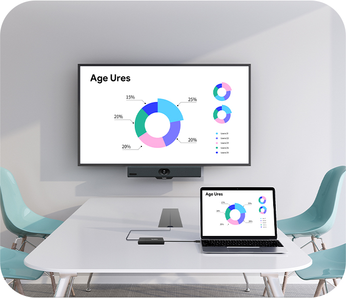 MeetingBar A10 creates a plug-and-share experience with the WPP30 presentation pod. Plug the WPP30 into your laptop to share content wirelessly without configuring anything.