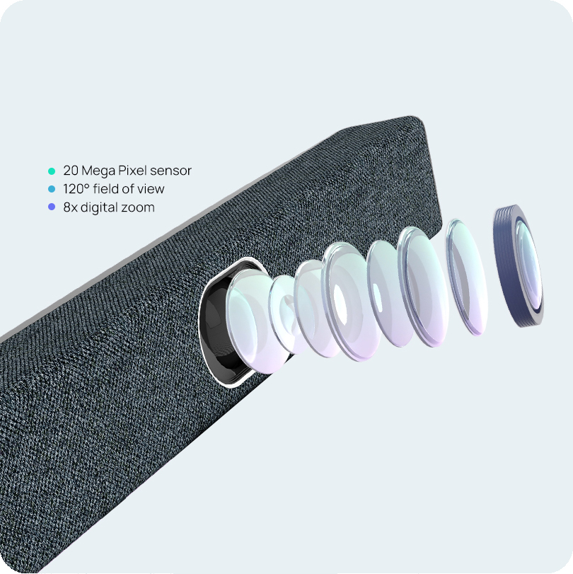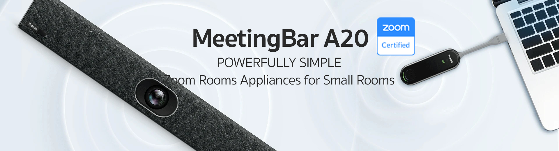 Yealink MeetingBar A20 is designed for small rooms. It features a 20-megapixel sensor and 120° field of view, which ensure an ultra-clear and ultra-wide view even in small conference room.