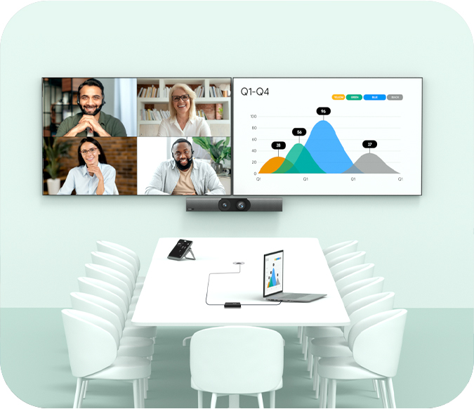 Smart Gallery follows the active speakers and makes sure everyone can be seen clearly and feel included, providing better support for remote collaboration.