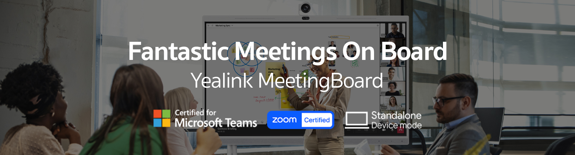 Yealink MeetingBoard consists of a 4k camera, crystal-clear speaker, full-duplex microphones, and a 65/86 inch smart collaboration whiteboard It has a conference meeting room video Display doubles as a whiteboard Writing function to provide an immersive meeting experience and allow collaboration anytime, anywhere.