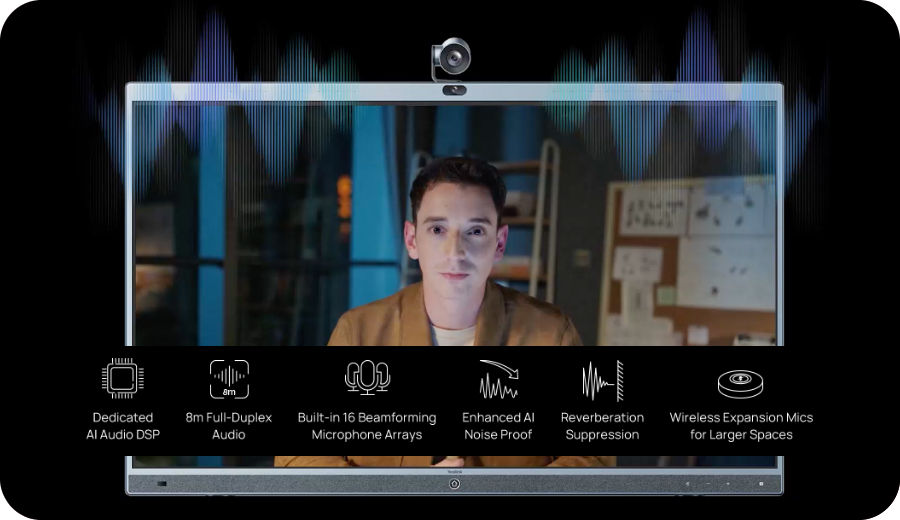 With the 4K camera and powerful encoding and decoding capabilities, MeetingBoard realizes truly smooth and stable HD Teams meetings. Powered by AI technology, the camera brings diverse views such as Auto Framing, Speaker Tracking, Multi-Focus Framing and Picture-in-Picture.