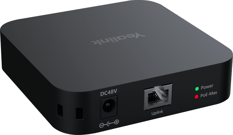 Meet Yealink RCH40, the Gigabit PoE+ Switch designed for Meeting Room Audio & Video Networking. With four Gigabit Ethernet downlink ports and one Gigabit Ethernet uplink port, Yealink RCH40 supports 802.3af/at standards, delivering up to 30W of power per port. With a total PoE power budget of up to 90W, it's an ideal solution for connect-ing audio and video devices in video conference systems. Choose Yealink RCH40 for seamless connectivity, efficient power management, and a space-saving design—all in one compact package.