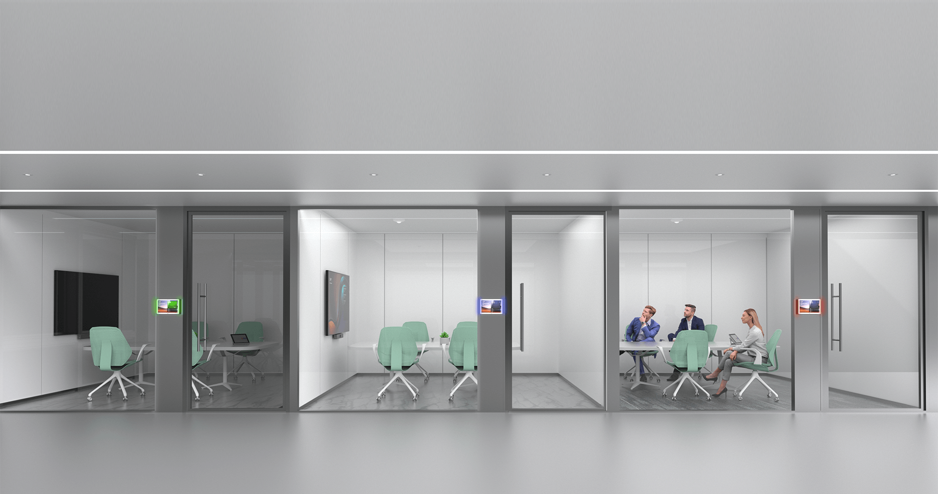 With the new stylish white design and full-color LED light, you can easily see the availability of the meeting room from a distance. This feature enables your team and guests to quickly locate their designated rooms, simplifying the meeting scheduling process. When paired with a RoomSensor, through conference meeting room digital signage the RoomPanel Plus can automatically update the room status, providing you with a smarter and more user-friendly meeting experience.