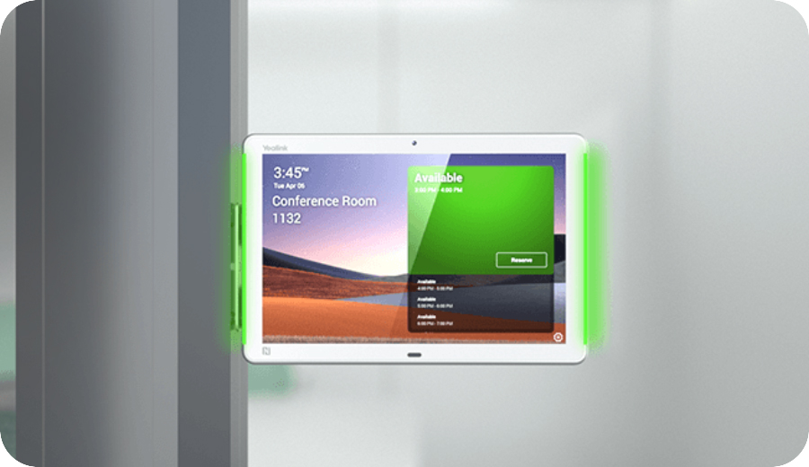 Designed for a better scheduling experience, the 10.1-inch spacious multi-touch screen of RoomPanel Plus makes it easy to see meeting details clearly and reserve a room for ad hoc or future meetings. The built-in Android 11 system gives you an even faster, more reliable, and more secure user experience. In addition, with its sleek and lightweight design, available in both black and white, the RoomPanel Plus effortlessly complements diverse spaces.