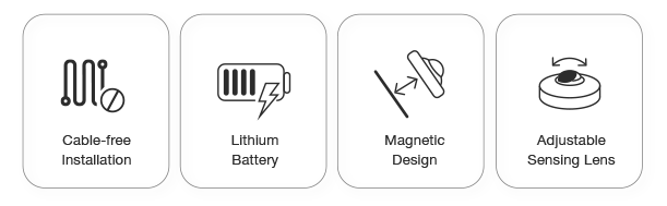 Powered by the replaceable lithium battery and wireless connectivity, the RoomSensor can be deployed without any cable. The magnetic design also makes the installation/maintenance easy and convenient. Moreover, the adjustable "lens" allows for different sensing area configurations and adds more adaptability to the deployment.
