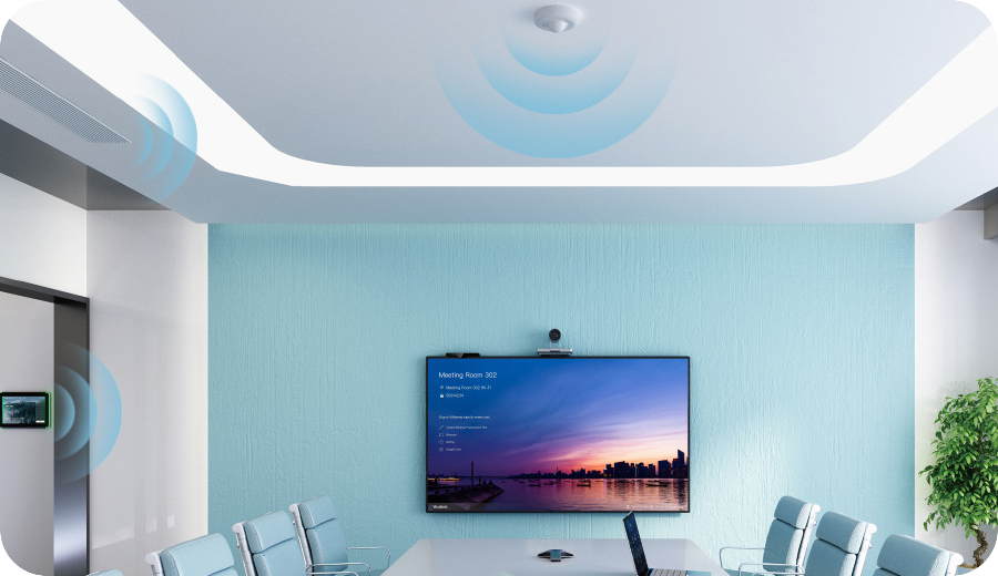 As a compact all-in-one sensing appliance, a single RoomSensor is ideal for usage in huddle to medium meeting rooms. And for large-sized ones, a multi-sensor network via Bluetooth mesh can be adopted to implement broader coverage.