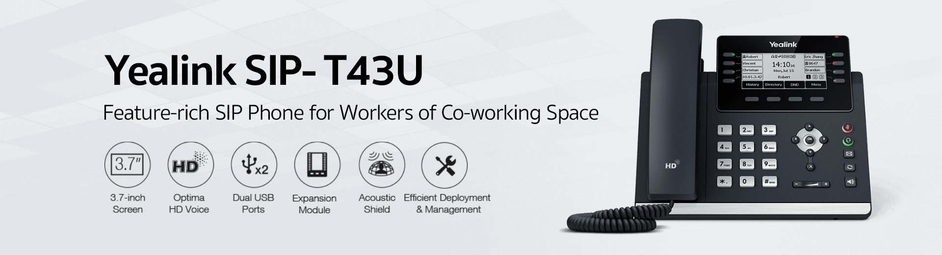 The SIP-T43U IP phone is a feature-rich business tool for excellent communications and extended functionality. Integrated with Hall Switch, T43U gives you a quieter operation and environment. It is a 12-line IP phone that comes with a 3.7- inch large black-and-white screen and the EXP43 support. United Yealink Optima HD Voice technology, the T43U awards you the superb audio quality and crystal-clear voice communications. The phone feels quicker and more responsive when performing call features. Moreover, the T43U puts dual USB ports in a phone that makes Bluetooth, Wi-Fi, USB headset and USB recording come true, and you can use any two of them freely according to your needs. The Yealink new T4U series offers the same elegant appearance as the T4 line, but with improvements for greater interoperability and better collaboration. The T4U series better builds the Yealink ecosystem and is compatible with more Yealink headsets, supporting intelligent channel switching* and using the phone to configure and upgrade headset.