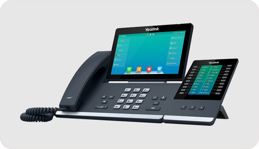 Especially designed for busy executives and professionals, Yealink SIP-T57W is an easy-to-use Prime Business Phone with an adjust- able 7-inch multi-point touch screen that you can not only easily and flexibly find the comfortable viewing angle according to the per- sonal and environmental needs, but also get a rich visual presentation and easy navigation with just one-touch. With the built-in Blue- tooth 4.2 and the built-in dual band 2.4G/5G Wi-Fi, the SIP-T57W IP Phone ensures you to keep up with the modern wireless technol- ogy and take the first chance in the future wireless age. Its built-in USB 2.0 port allows for USB recording or a direct wired/wireless USB headset or up to three Yealink EXP50 expansion modules connection. Benefitting from these features, the Yealink SIP-T57W is a powerful and expandable office phone that delivers optimum desktop efficient and productivity.