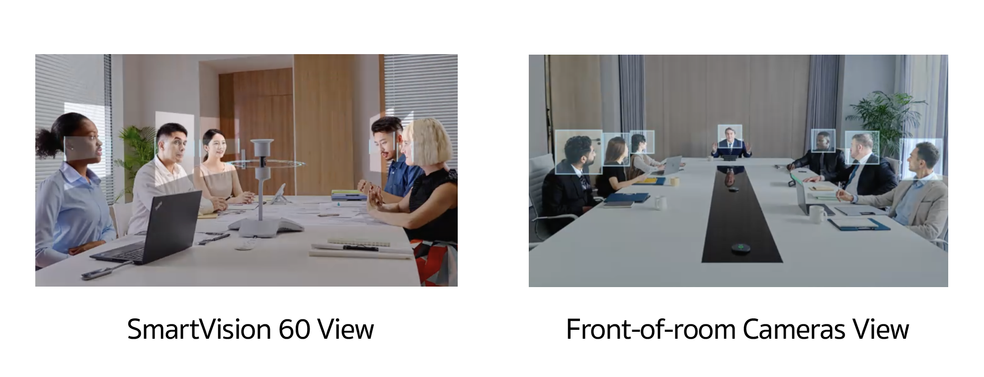 Introducing the Multi-Stream IntelliFrame, which provides individual video feeds of up to four in-room active speakers while showcasing the panoramic view of the room. The feature enables everyone at the conference table to appear front and center on the screen crystal-clear.