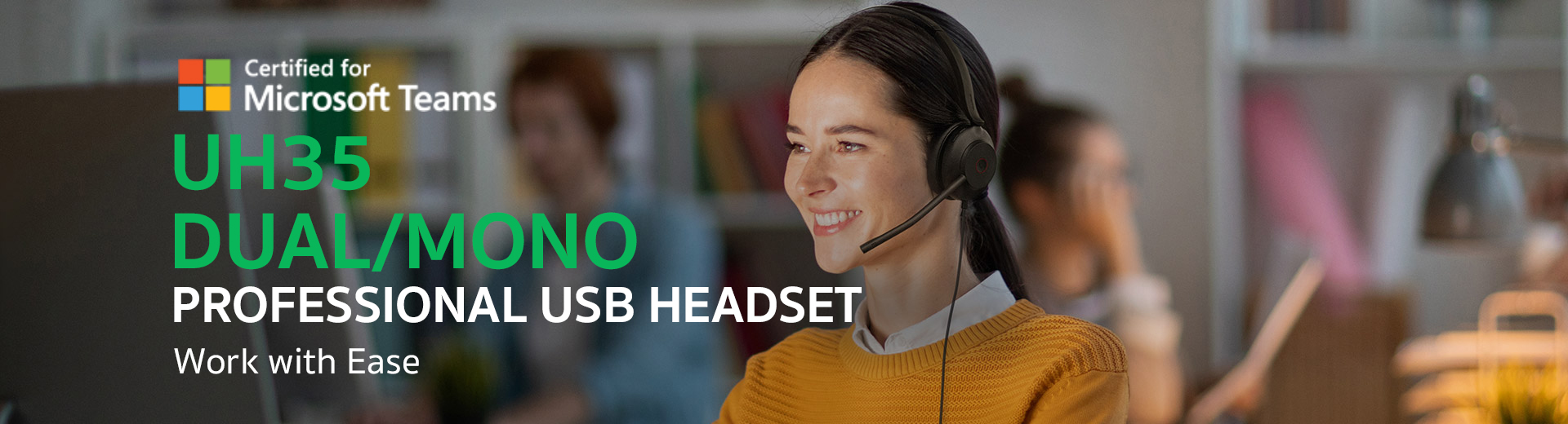 Introducing the UH35, our latest innovation in professional headsets. The UH35 boasts an ultra-lightweight body designed for extended wear without fatigue. Crafted with a leather headband and cushion, this headset not only enhances comfort but also improves heat dissipation for prolonged use.