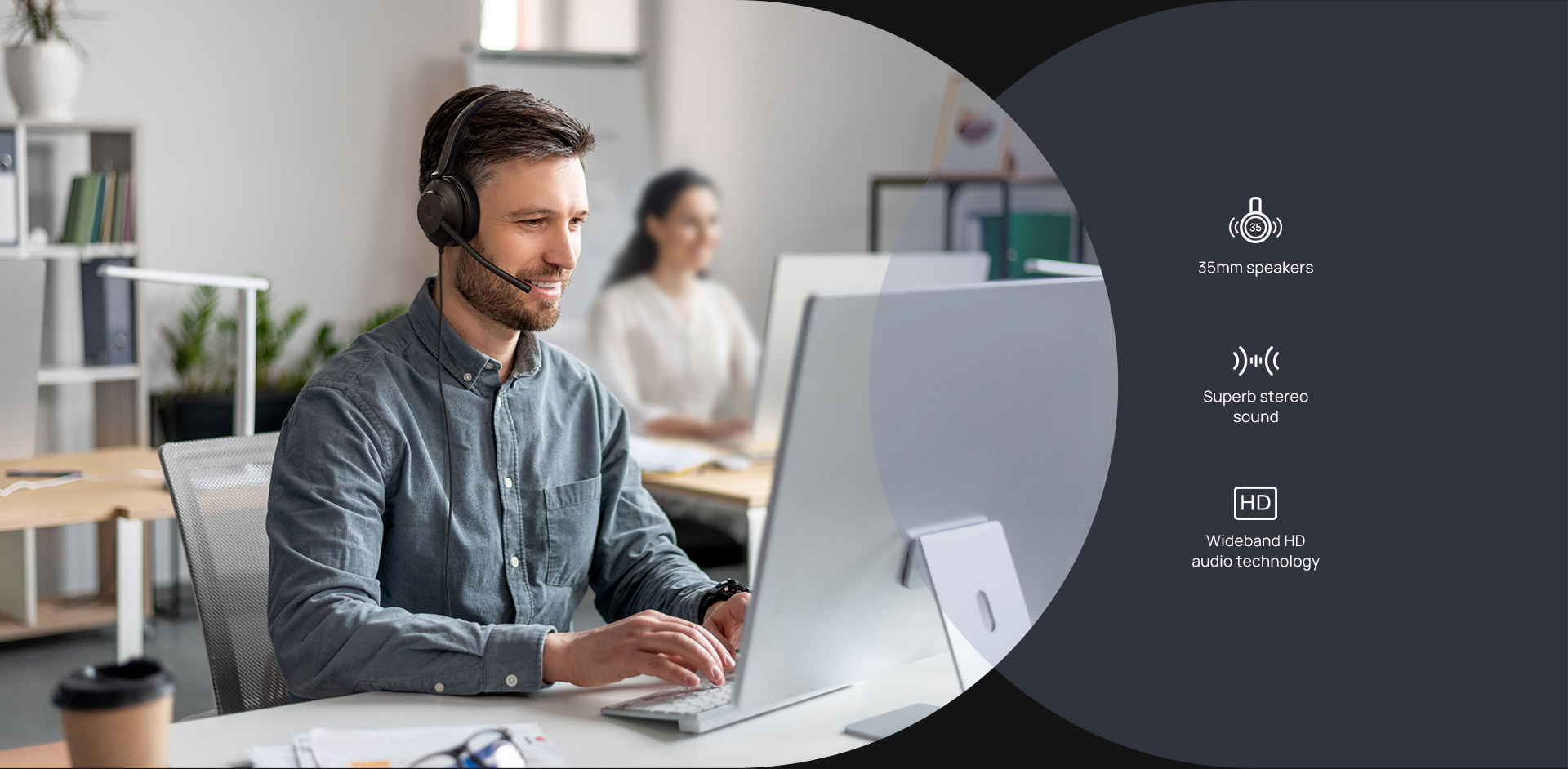The UH35 professional headset is equipped with 35mm speakers, delivering superb stereo sound and dynamic EQ that automatically switches between call mode and music mode. Whether you're in a meeting or listening to music while working, you'll experience clear sound in call mode and high fidelity in music mode. Stay focused on your tasks and let your creativity flow with every detail captured.