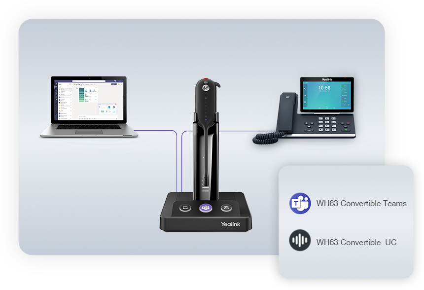 Designed with full compatibility, WH63 perfectly matches your UC platform and device, delivering a consistent call experience, better communication quality, and lower IT costs. It also supports dual device connection, connecting your PC and desk phone simultaneously. Further, certified for Microsoft Teams, it comes with a dedicated Teams button for activating Microsoft Teams with one touch.