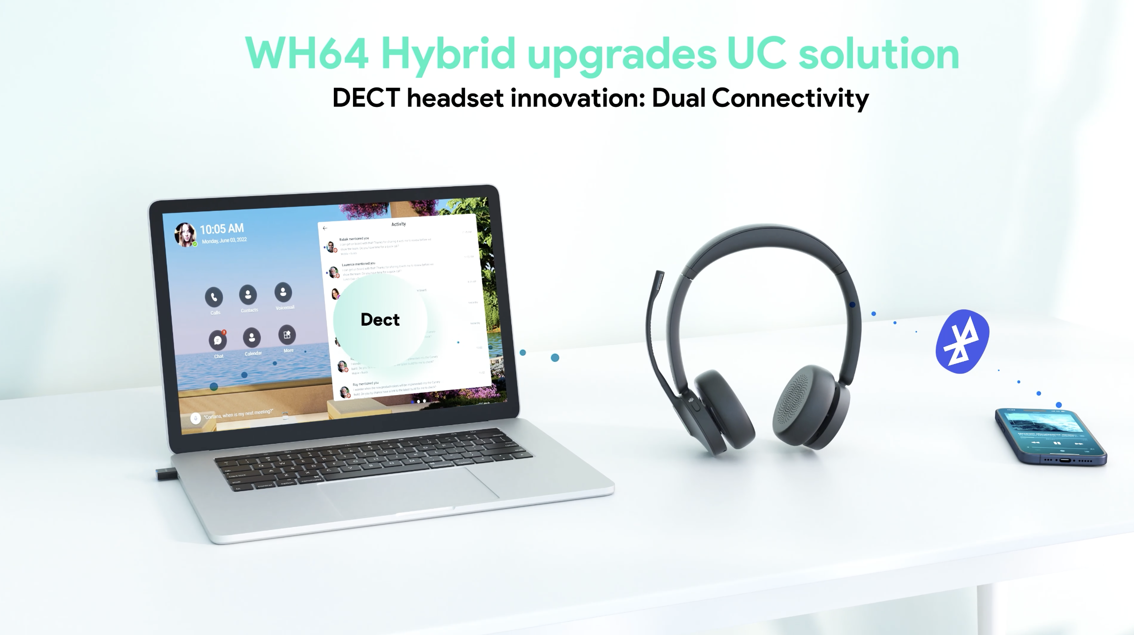 Introducing the Hybrid Core*: By integrating two cores, Bluetooth and DECT, into one headset, we‘ve combined Bluetooth’s mobility and ease of use with DECT‘s robust connectivity and extended range, ensuring an exceptional UC experience in professional environments.