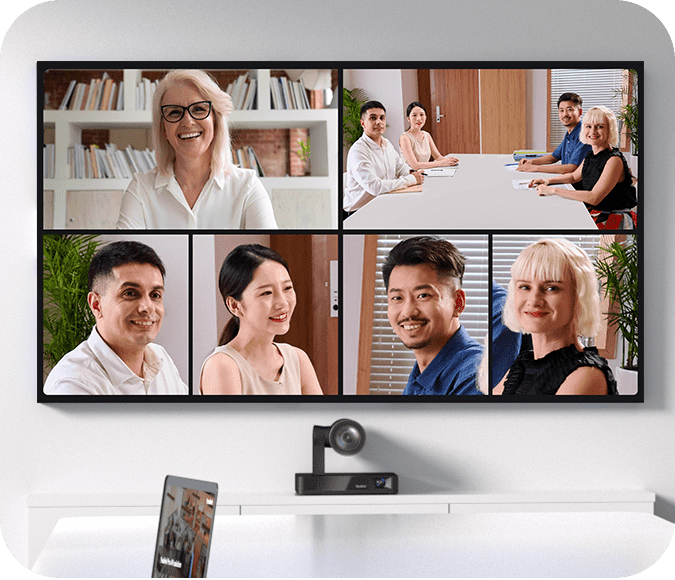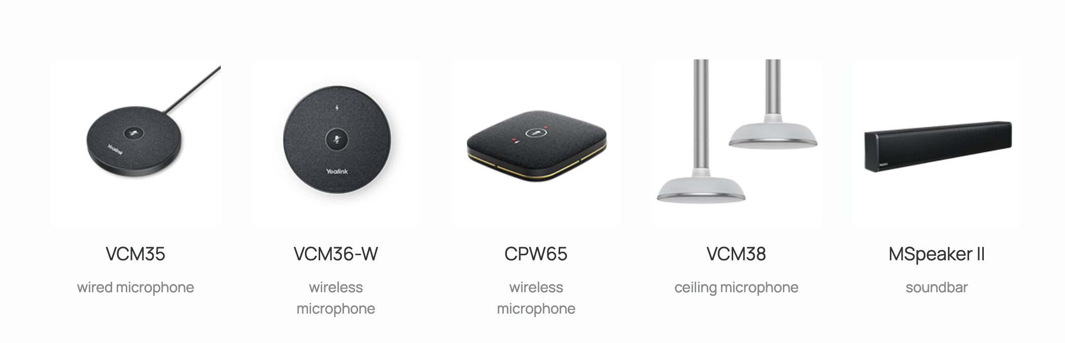 In addition to the advanced video conference camera, the Yealink ZVC 860 (Base-kit) system offers flexible audio options.Choose from a range of voice pickup devices, including the Yealink VCM35 wired microphone, the VCM36-W and CPW65 wireless microphones,and the VCM38 ceiling microphone, combined with the MSpeaker II soundbar, to meet your specific audio needs.